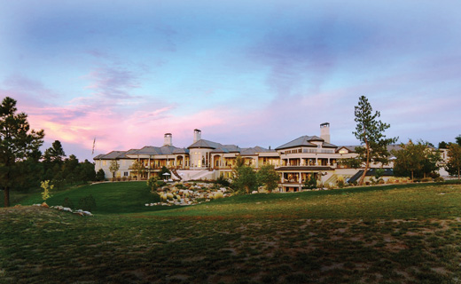 Denver, Colorado — Evans Ridge Estate, one of the grandest hillside homes near Denver, Colorado, is offered for sale at US$19.5 million. Regally poised on its own scenic, gently sloped hillside, this palatial 70-acre estate offers a unique blend of upscale amenities, classical stylings, and high-tech modern living. The residence has been designed for large family gatherings, corporate retreats, and lavish entertainments, and provides breathtaking vistas of the Front Range peaks including Devils Head and Mount Evans.